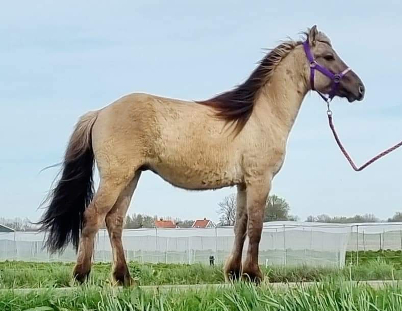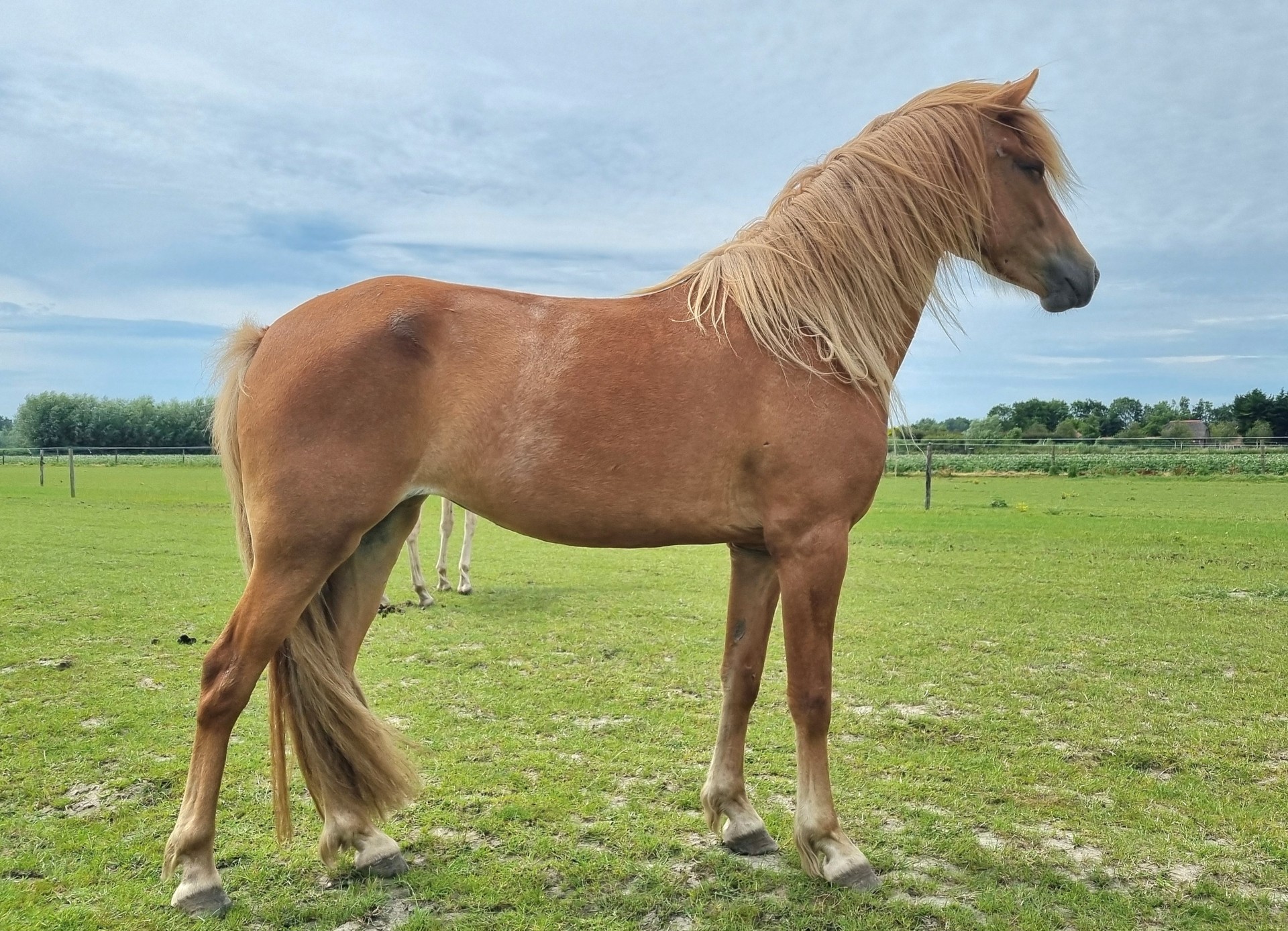 Hashtag is een vriendelijke, voskleurige merrie van 4 jaar met een barok uiterlijk, natuurlijke tölt en een stokmaat van bijna 1.50 meter. Ze is beschikbaar vanaf september 2025, na het spenen van haar veulen.